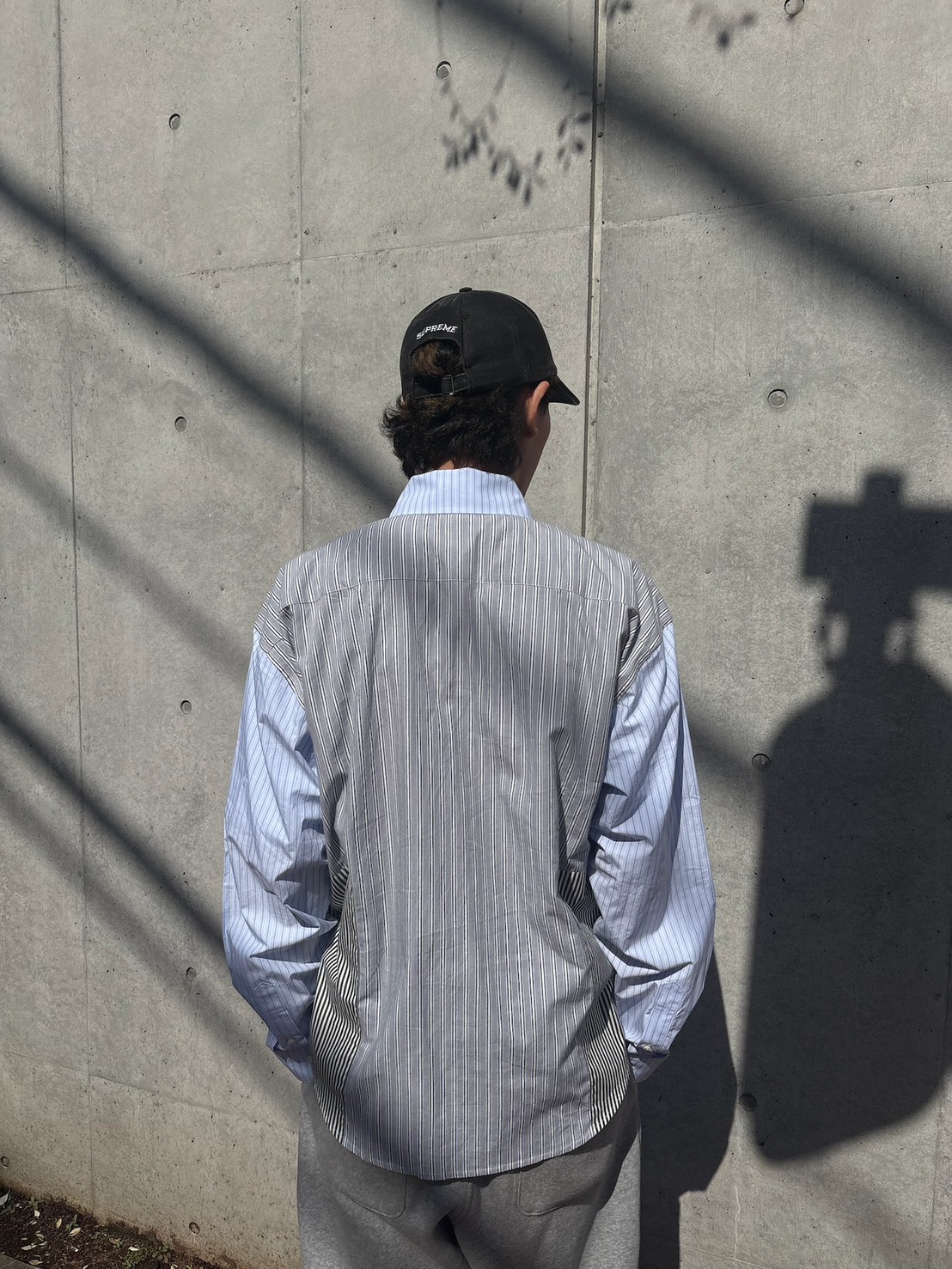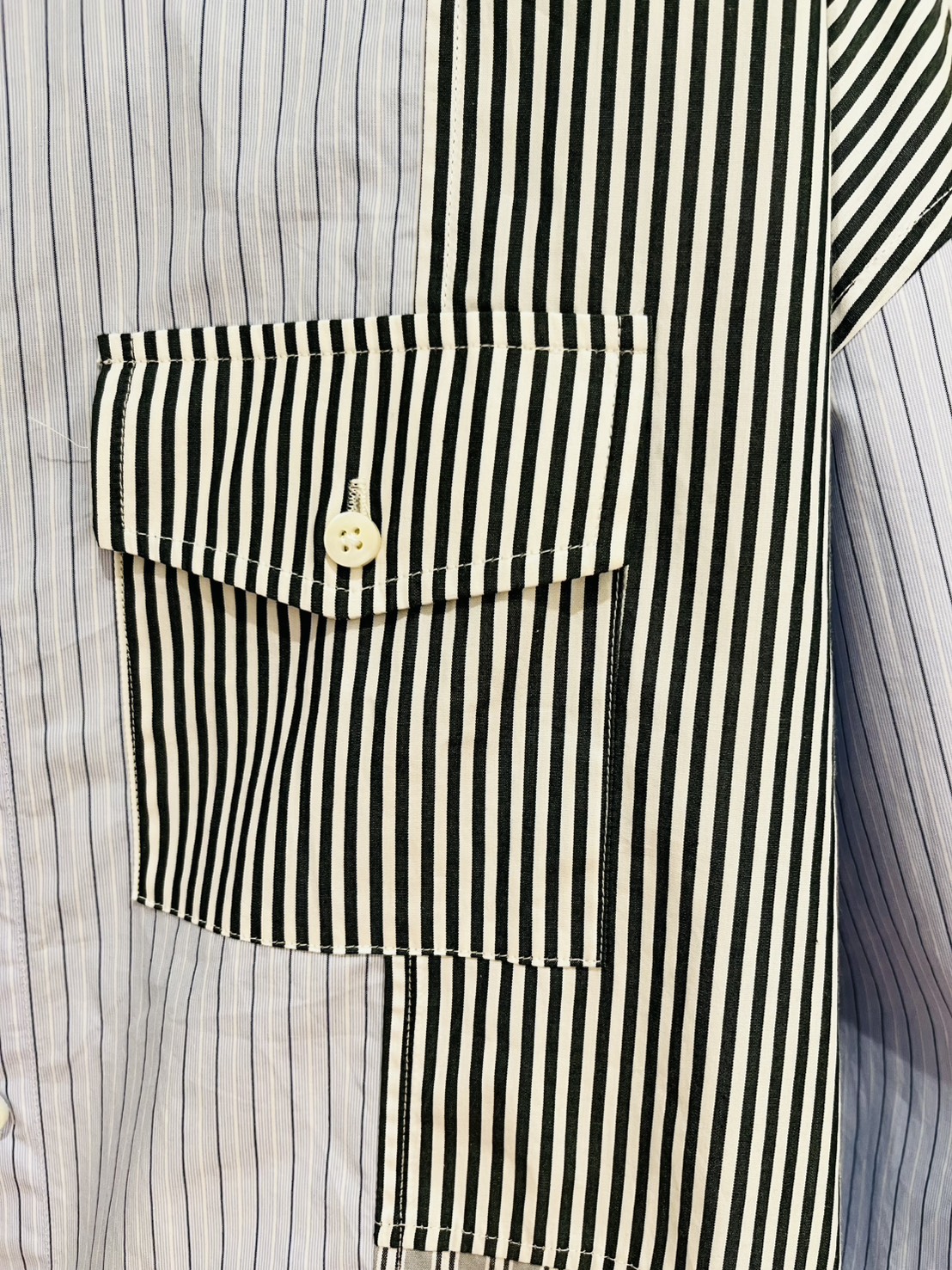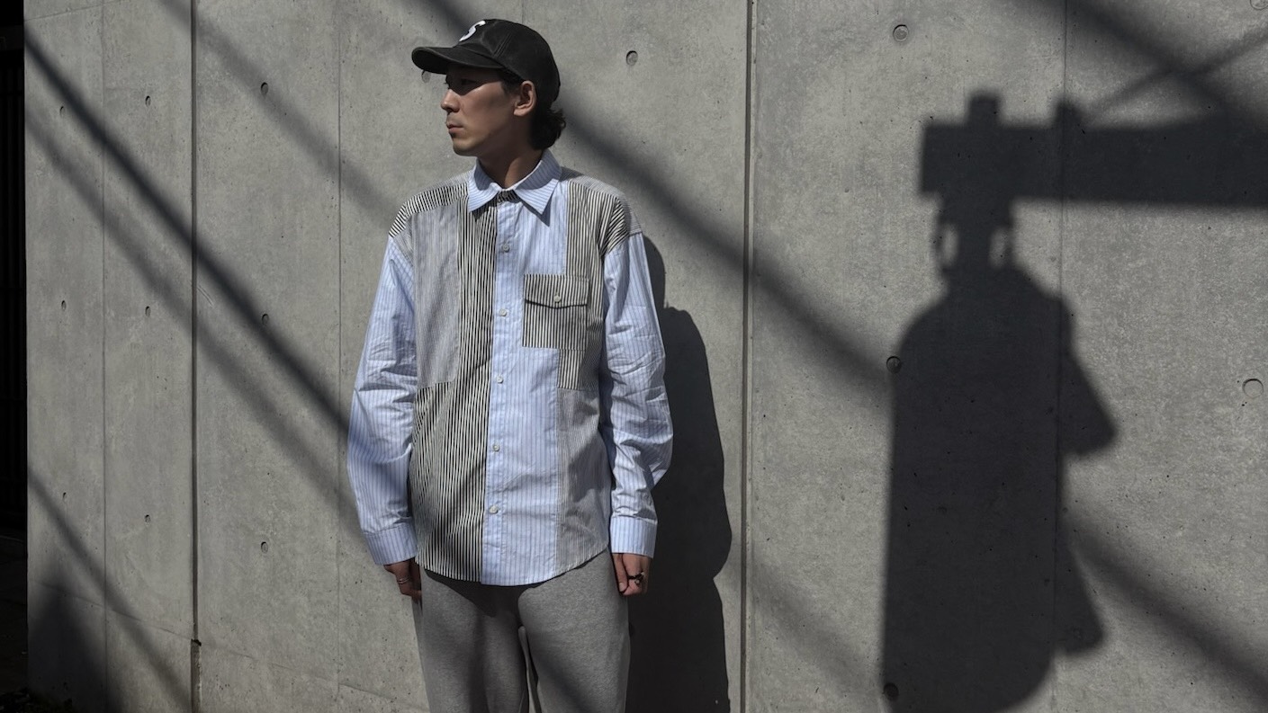 つぎはぎの用に様々なストライプ柄を合わせたシャツ。
