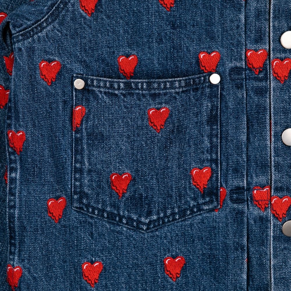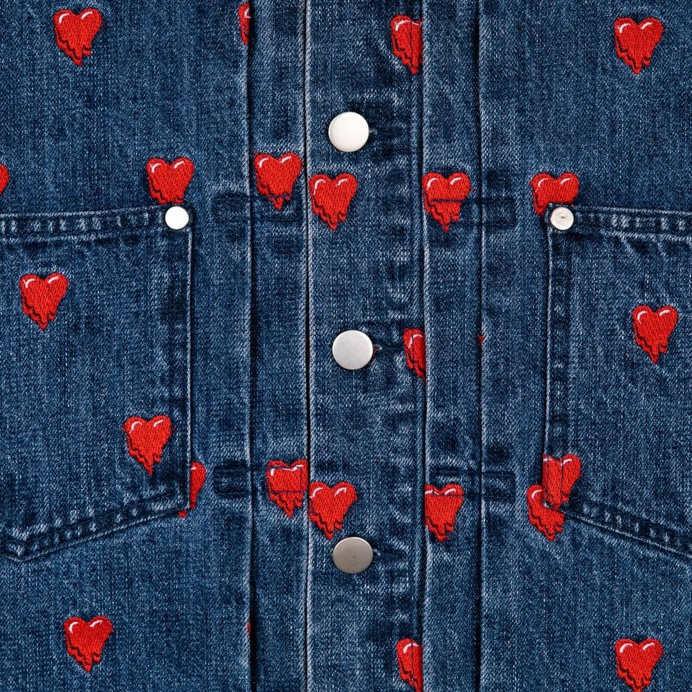 EMOTIONALLY UNAVAILABLE HEART LOGO TRUCKER JACKET