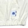 リネン混コットンによるタイプライタークロス、ギャザーやバルーン型、リメイクアイテムかのように配置したグラフィックはラバーと顔料を混ぜた独自調合によって生地の凹凸感に馴染ませて。