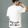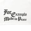 背面には「For Example Made in Peace」のメッセージを、前面と同じくクラシカルな書体で大胆にプリント。メッセージ性のあるこの言葉には、ブランドが大切にしている“平和”や“共存”といった思想が込められており、着る人の価値観を表現するアイテムに仕上げております。