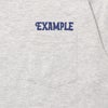 フロントにはワンポイントで「EXAMPLE」ロゴをプリントし、実用性とアクセントを兼ねた胸ポケットを配置。