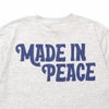 バックにはレトロなフォントで「MADE IN PEACE」のメッセージを大胆にプリント。