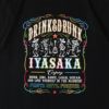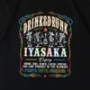 フロントには「DRINK & DRUNK」「IYASAKA」のメッセージを中心に、楽器を奏で踊るスケルトンたちを大胆にデザイン。