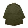 耐水性ミリタリーフィッシュテールパーカーで、襟にジッパー式チェストポケットとジッパー式スタッシュフードが付いています。