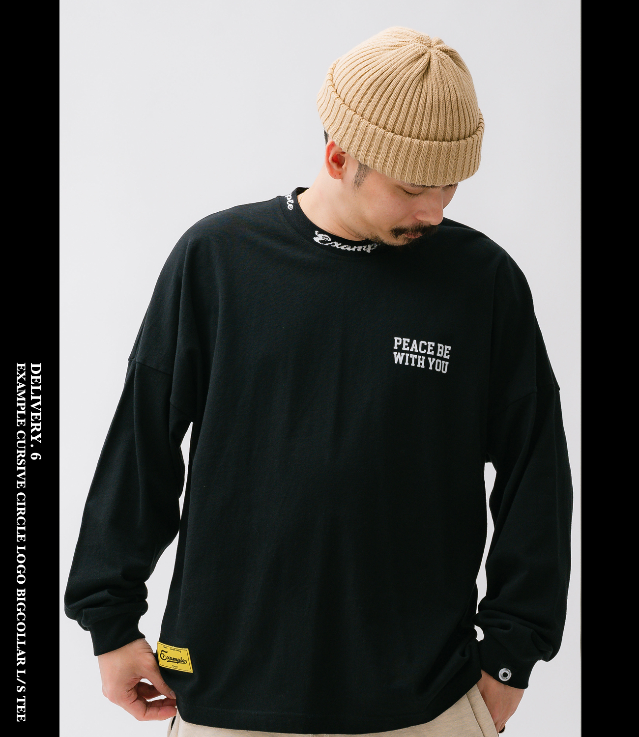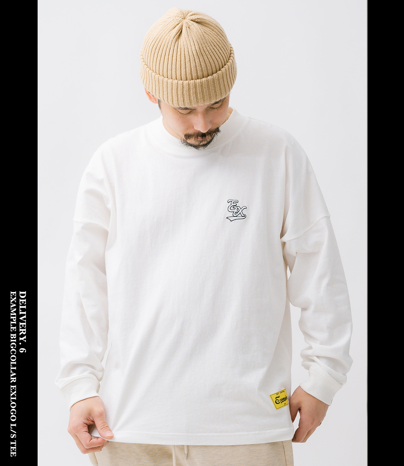 シンプルなデザインながら、首元にアクセントを加えEXAMPLEらしさを取り入れました。