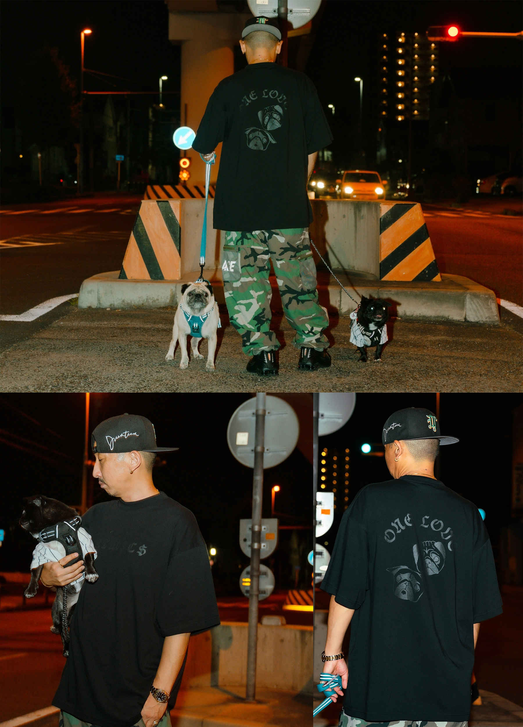 バックには、DJ RYOWの愛犬である麻呂とMIMIを落とし込み、ONE LOVEのメッセージを添えたスペシャルな一着。