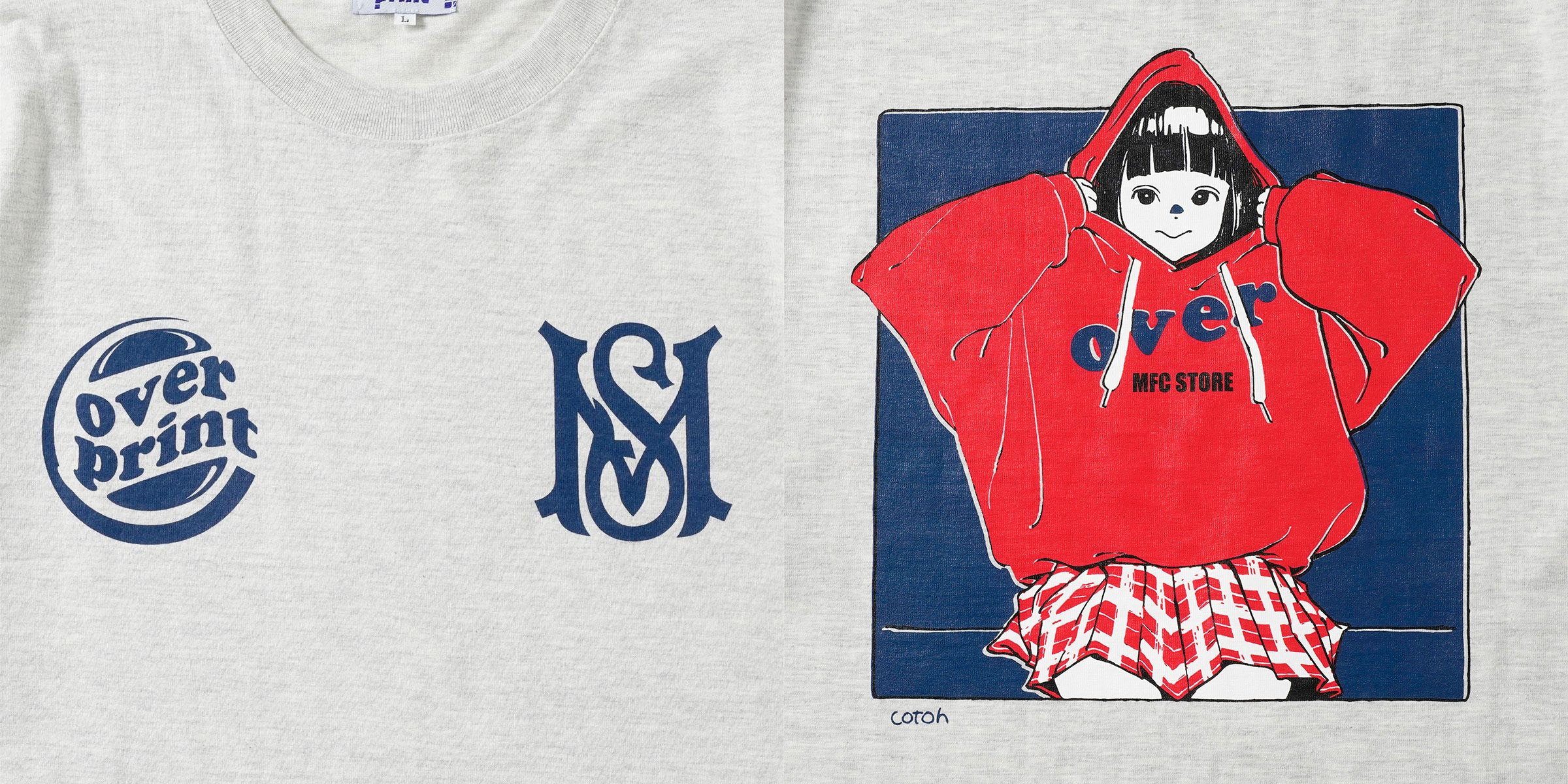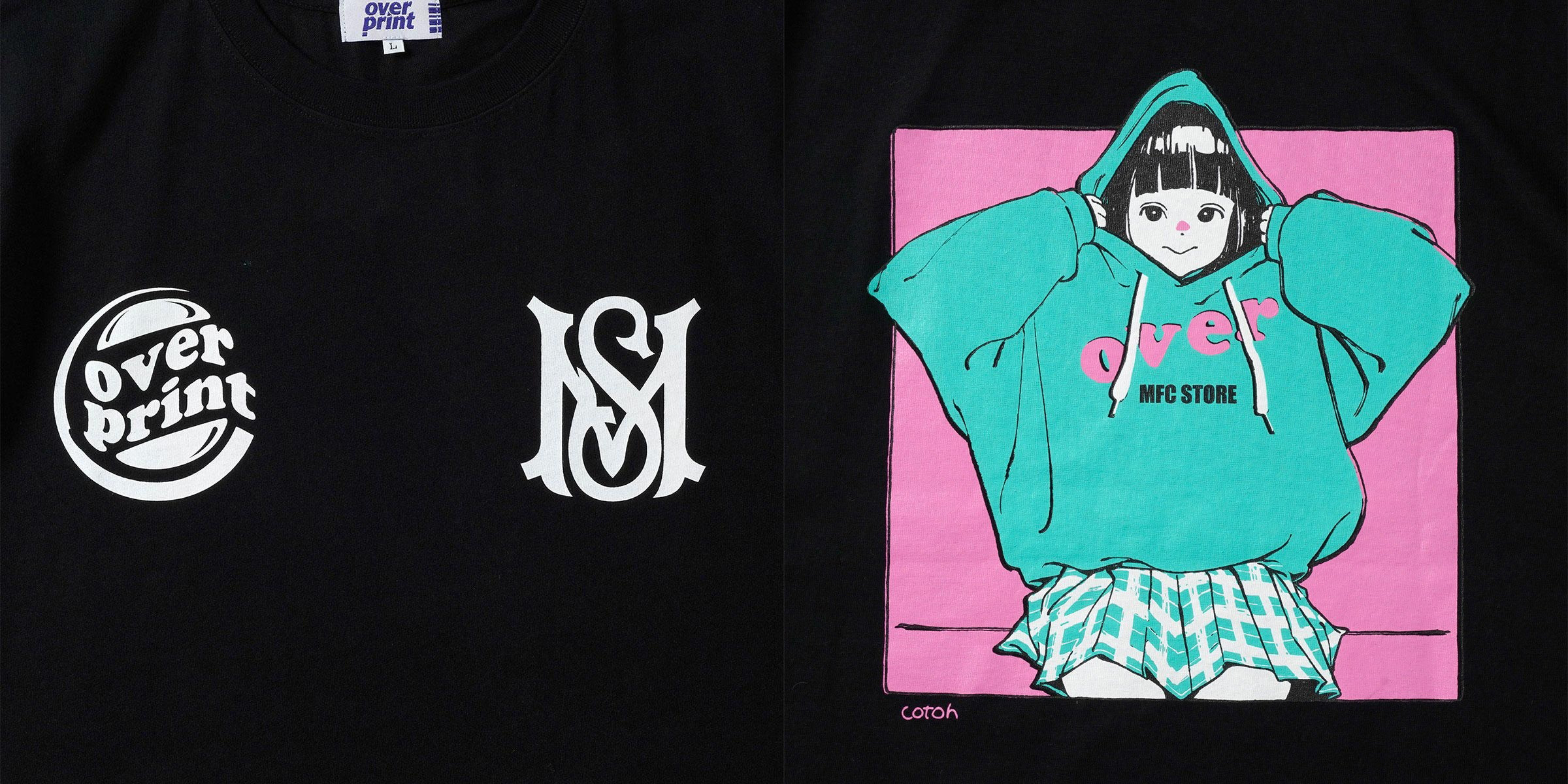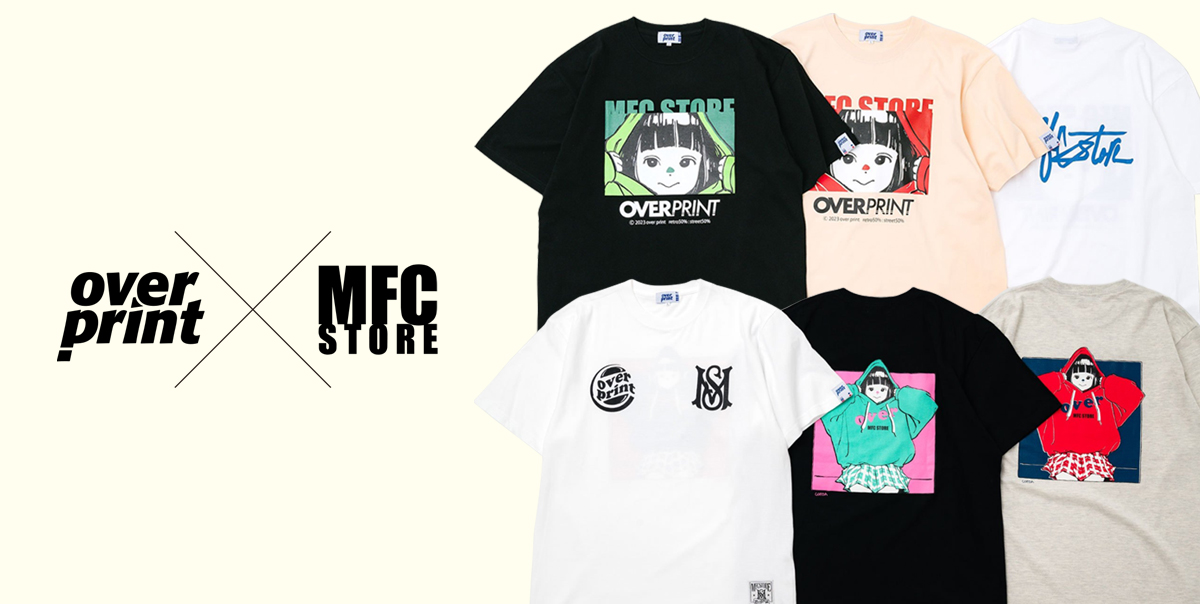 数あるMFC STOREのロゴの中でも特に人気の“MS LOGO” や“SCRIPT LOGO”を配置し、「MFC STORE」と「over print」の代表作を融合させたスペシャルなアイテム。