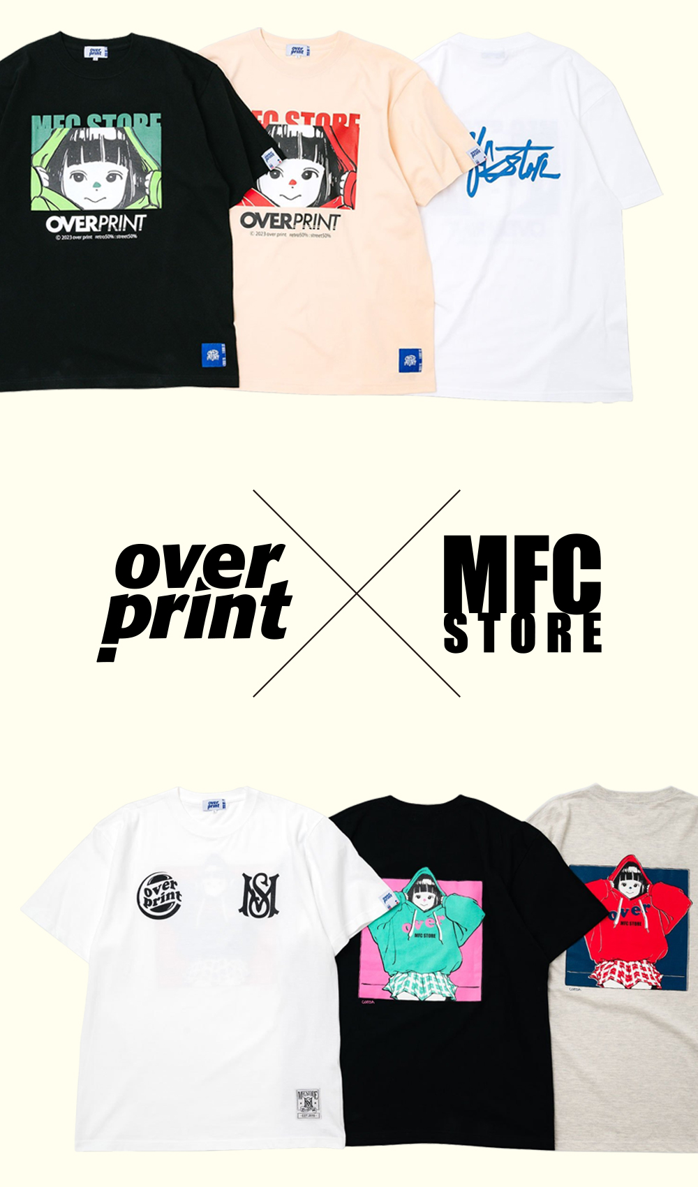 retro50% : street50%をコンセプトに掲げるアパレルブランド「over print(オーバー プリント)」とのコラボレーションアイテムを、2023年7月17日(月・祝)“海の日”より発売