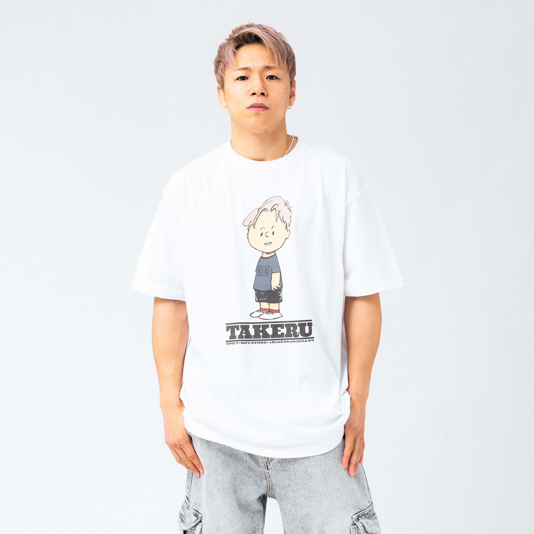 ラフなタッチで描かれた武尊選手が落とし込まれた、コラボレーションならではの一着。