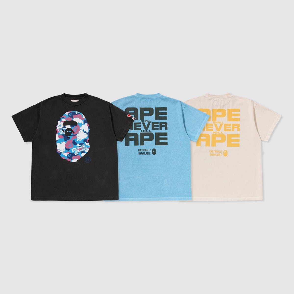 他の画像を見る EMOTIONALLY UNAVAILABLE × A BATHING APE EU APE SS TEE 【26SS】 NEW ¥ 30,800 税込 販売開始前です。 販売期間 2026/04/25 10:00 〜 カートに入れる お気に入りに登録する
